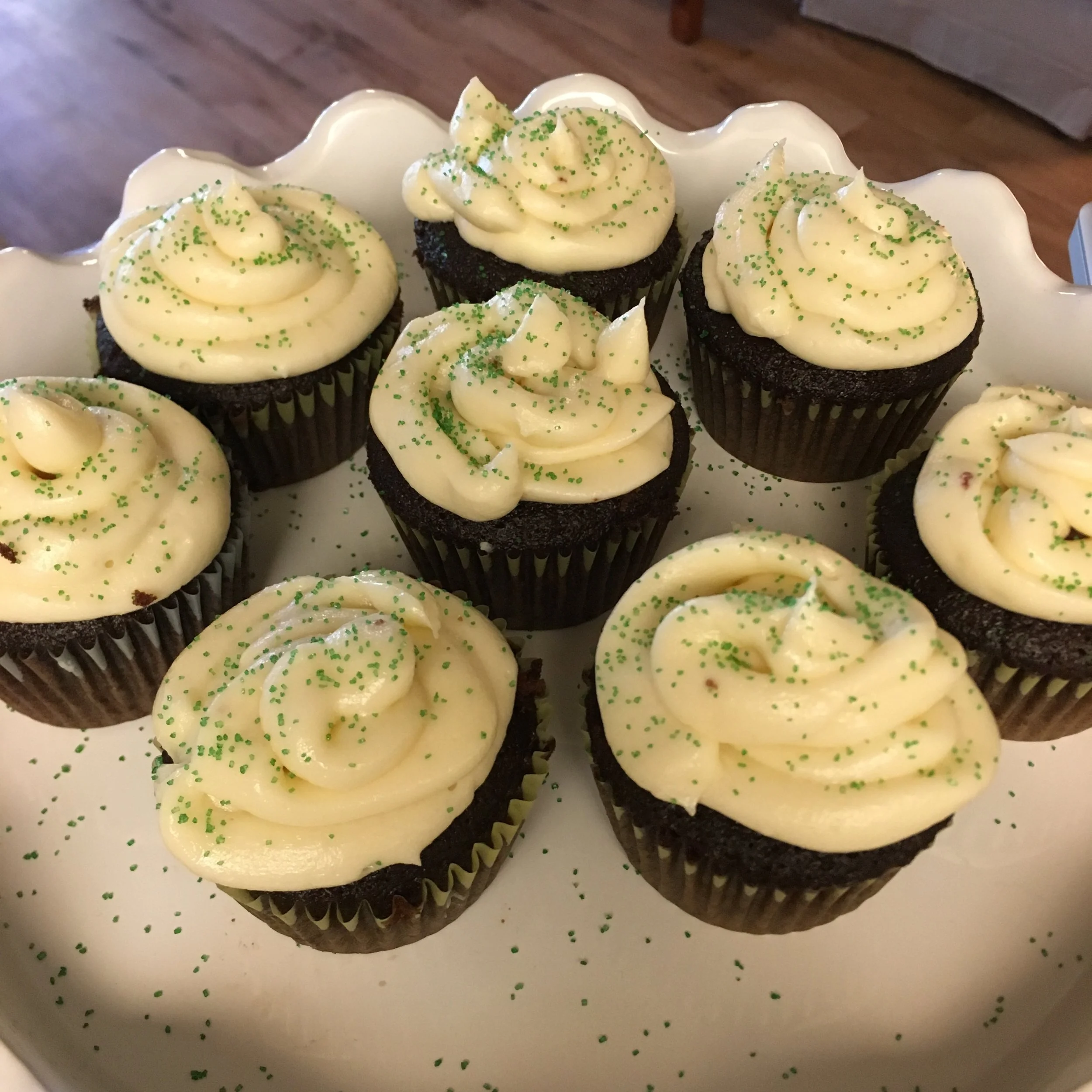 Guinness chocolate cupcake with Jameson ganache and Bailey’s frosting. That is all. Original recipe here.